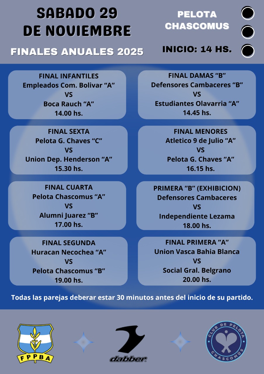 SABADO 29 DE NOVIEMBRE FINALES ANUALES 2025